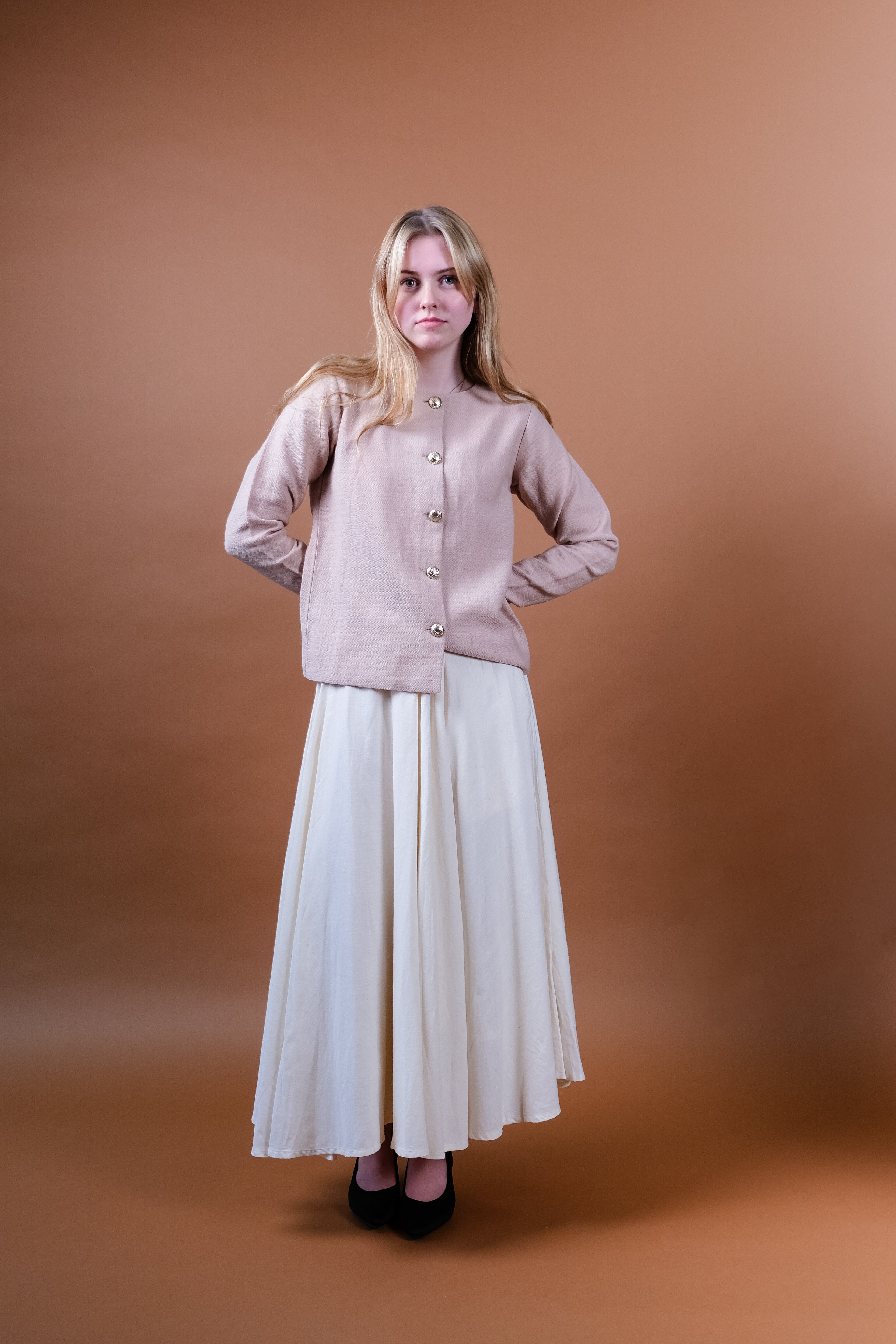The Merino Cardigan reimagines a timeless classic through artisanal craftsmanship and subtle detailing. Handwoven from fine Merino wool in a delicate herringbone weave, it offers exceptional warmth with a soft, breathable touch. The piece is fully lined with mal cotton for added comfort and structure, finished with lustrous metal buttons that lend quiet sophistication. Designed for effortless layering, it embodies the essence of refined comfort understated, versatile, and enduringly elegant.